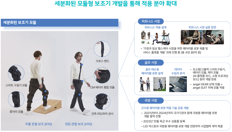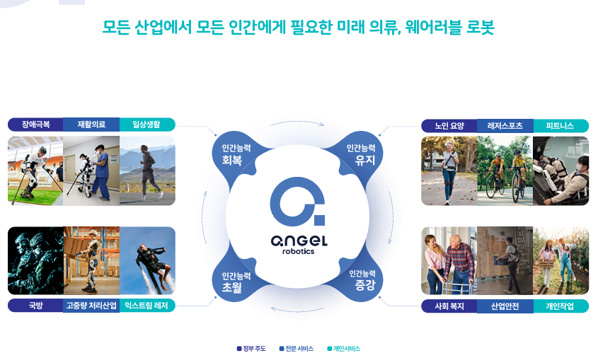 두 번째는 인간능력 유지를 위한 angel SUIT 브랜드로, 가정과 전문센터를 포함한 광범위한 B2C 시장을 목표로 하고 있습니다.
