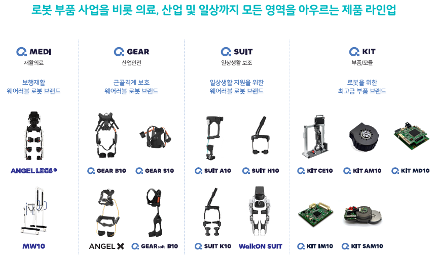 두 번째는 인간능력 유지를 위한 angel SUIT 브랜드로, 가정과 전문센터를 포함한 광범위한 B2C 시장을 목표로 하고 있습니다.