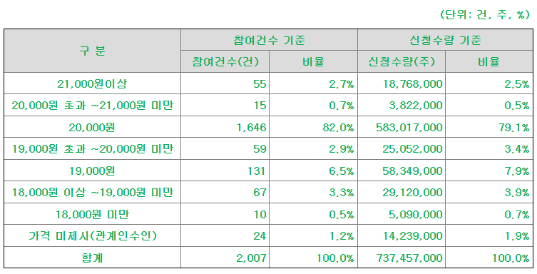 2. 공모가 : 20,000 원 (수수료 2천원)