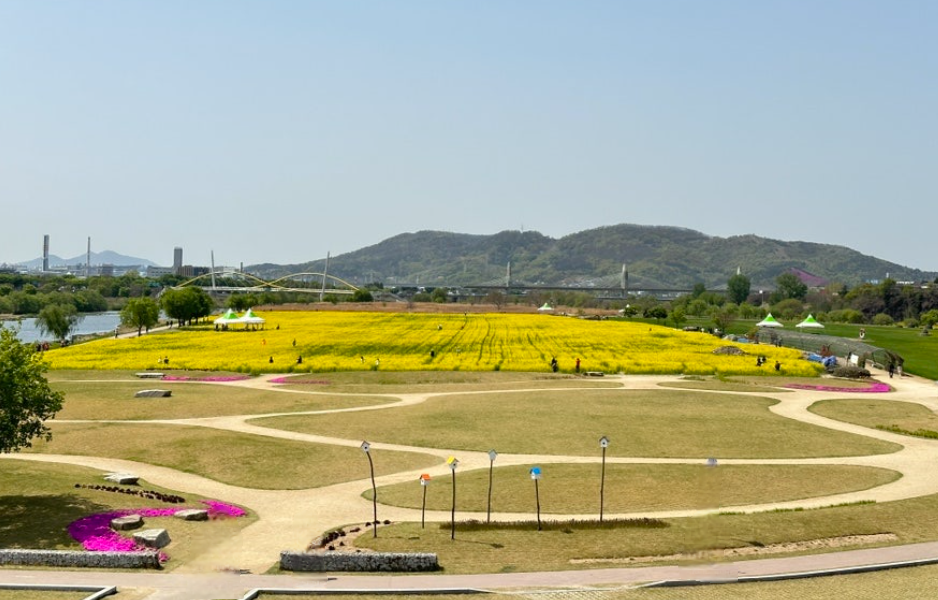 하중도는 대구의 대표적인 유채꽃 명소 중 하나로, 넓은 평야에 펼쳐진 유채꽃밭이 아름답습니다. 특히, 강변을 따라 산책하며 유채꽃을 감상할 수 있는 곳이 많아 인스타그램 사진 찍기 좋은 포인트가 가득합니다.