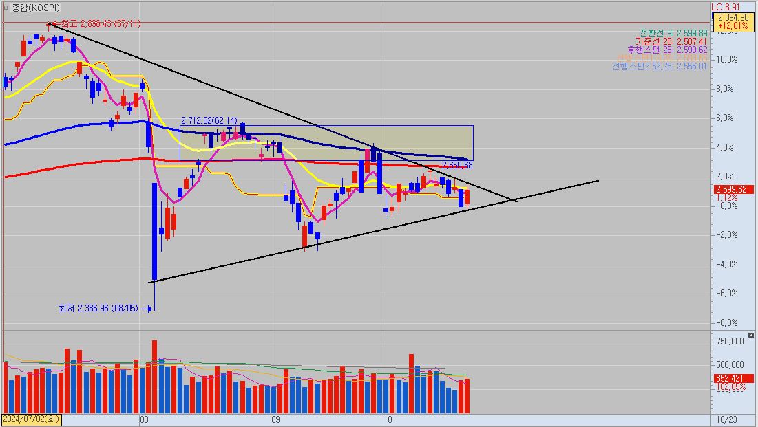그러다가 오후장에는 '금투세를 시행하지 않겠다'라는 기사와 함께 반등을 보여주었습니다. 코스피는 삼성전자가 약 4%까지 올랐다가 조금 밀리면서 2%대에 마무리하면서 전일 하락분을 모두 회복해 주었고, 코스닥은 긴 아랫꼬리를 만들고 지지라인 위에 안착한 모습입니다. 그리고 내일 아침 테슬라 실적발표 기대감에 전기차 관련주들도 상승이 나와주면서 코스닥 상승에 힘을 더했습니다.
