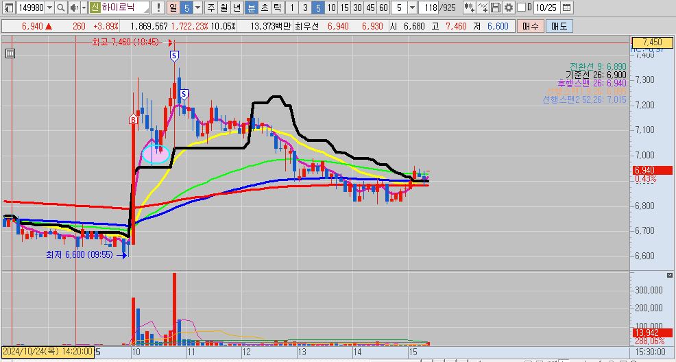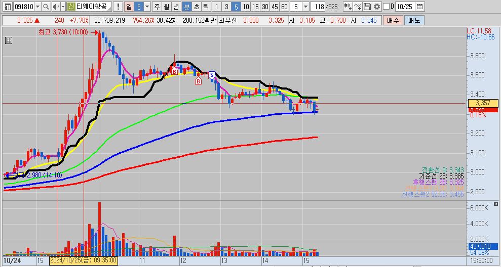 두 번째 : 지금 공부하고 연습하는 단타 타점을 적용해 볼 타점이 많아서 계속 해당 종목을 추적하지 못해서 아쉬움