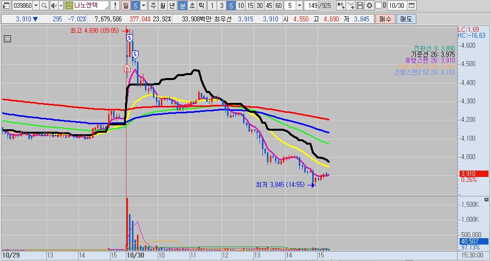- 전일 일봉상 박스 상단부를 계속 터치하면서, 살짝씩 뚫어 주는 모습에 종가베팅을 하였습니다. 매도가 참 아쉬웠습니다. 나노엔텍을 단타 치면서 핑거에 관심을 못 줄 것 같아서 시초가 바로 약 익절 처리하였습니다.