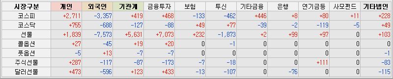 어제까지 분위기가 좋던 국장이 오늘 다시 양 지수가 하락하는 모습을 보였습니다. 외국인의 매도세가 다시 강해졌고, 기관의 매수세가 약해졌습니다. 반대로 개인들은 다시 매수세가 강해졌습니다. 하락장에는 개인들만 계속해서 매수하고 있는데, 개인들의 자금력이 엄청난 것 같습니다.