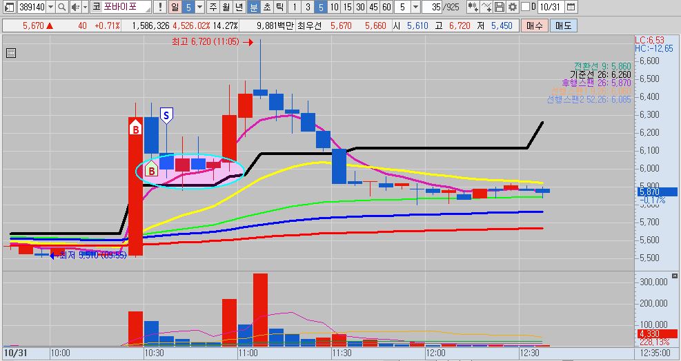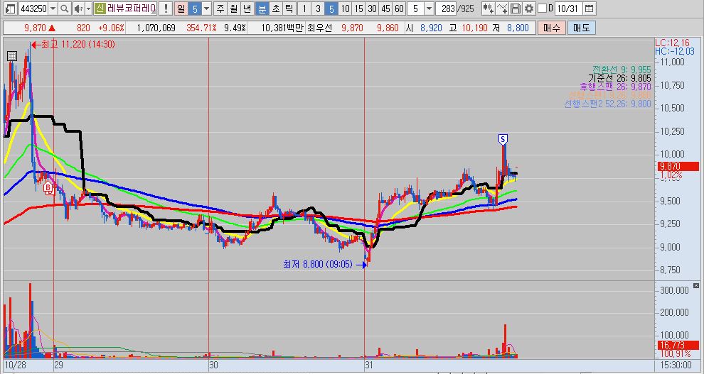 - '주가 급상승 후 조정 2일 그리고 반등' 의 패턴을 적용하여 매매를 했습니다. 운이 좋게 시초가가 갭이 떴고, 바로 매수를 했습니다. 클로봇이 물려있던 터라 크게 추가 베팅을 하거나 하진 않았습니다. 예상대로 상승이 나와주었고, 익절처리했습니다.