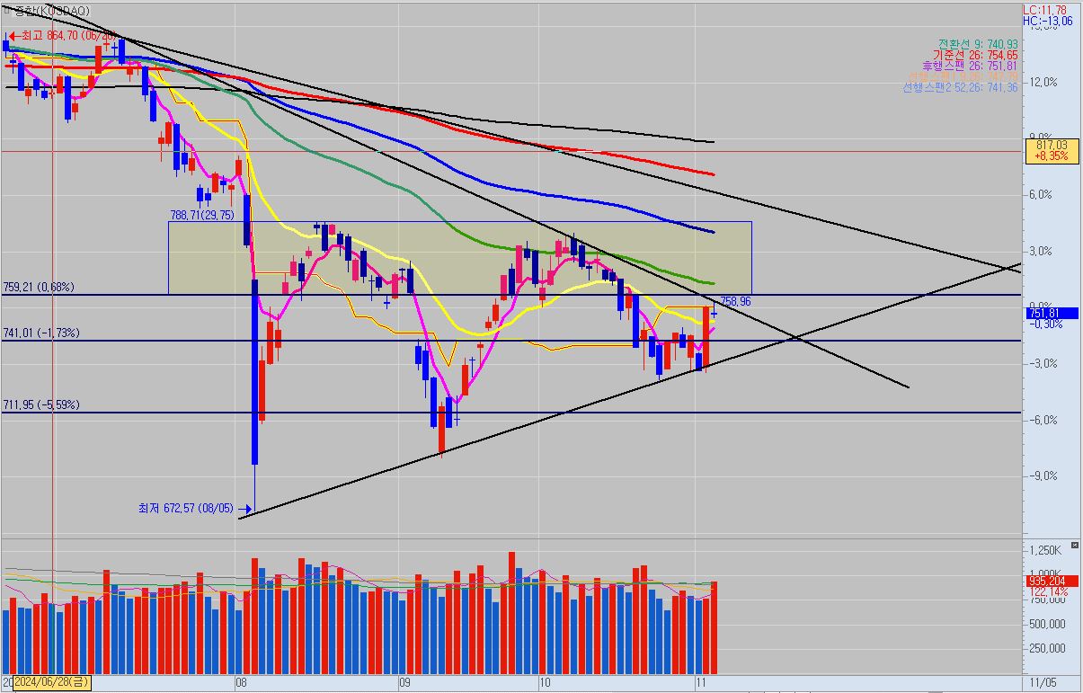안녕하세요. 오늘은 미국 대선이라는 이벤트로 인해서 주식장이 어제의 상승을 이어가지 못했습니다. 일단 '금투세'라는 악재는 해소가 되었습니다만, 오늘도 금투세 유예하겠다는 기사를 본 것 같네요. 참 쉽지 않은 하루하루가 계속되고 있습니다. 그럼 매매일지 작성하겠습니다.