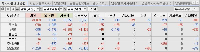외국인은 하루만에 다시 양시장 매도 포지션이고, 기관은 코스피를 매도하고, 코스닥은 약 매수하였습니다. 개인만이 외국인, 기관이 매도한 코스피를 다 받아냈습니다. 외국인, 기관이 언제쯤 쌍끌이 매수를 해줄지..