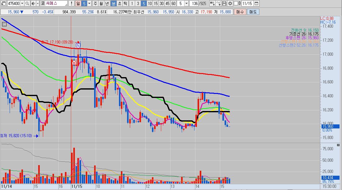 [매매일지] 동글이의 11/15 매매일지 (유니온, 이스트소프트, 노브랜드, 씨메스, 노바텍) +지수 체크