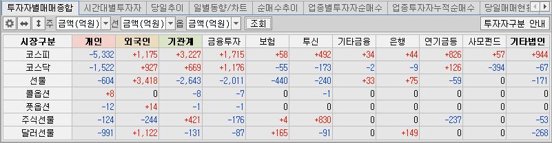 오늘 양시장을 외국인과 기관이 매수했습니다. 얼마만의 쌍끌이 매수인건지 반갑습니다. 그 외에도 금융투자와 연기금 등 주가가 바닥권이라고 판단하여 저가 매집을 하고 있는 것 같습니다.