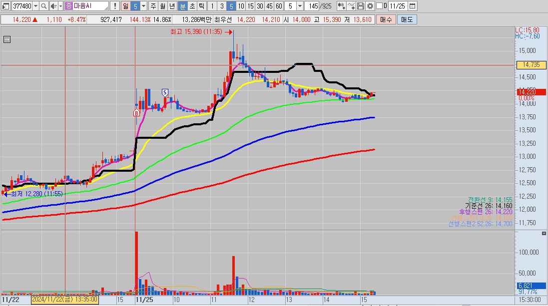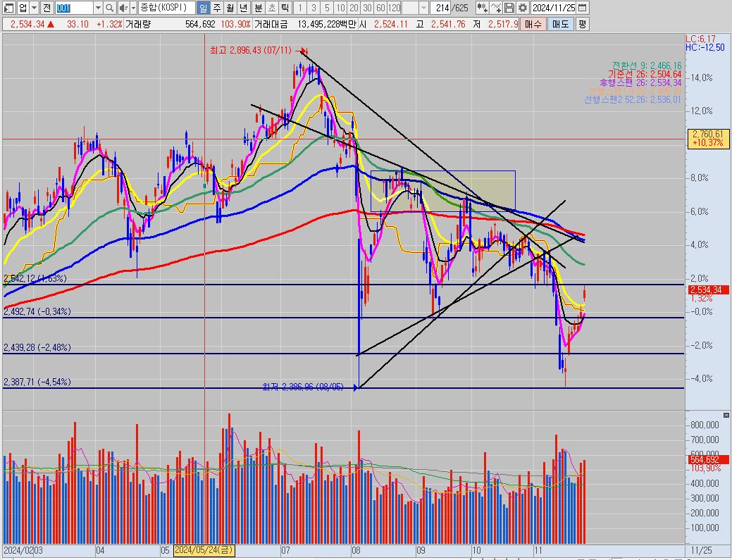 안녕하세요. 11월 마지막 주 월요일 시작이 참 좋았습니다. 월요일부터 양시장 빨갛게 물들었습니다. 하지만 그에 비해서 제 매매일지는 좀 실망이 있었습니다. 주도주를 제대로 못 찾았습니다. 그럼 매매일지 시작하겠습니다.