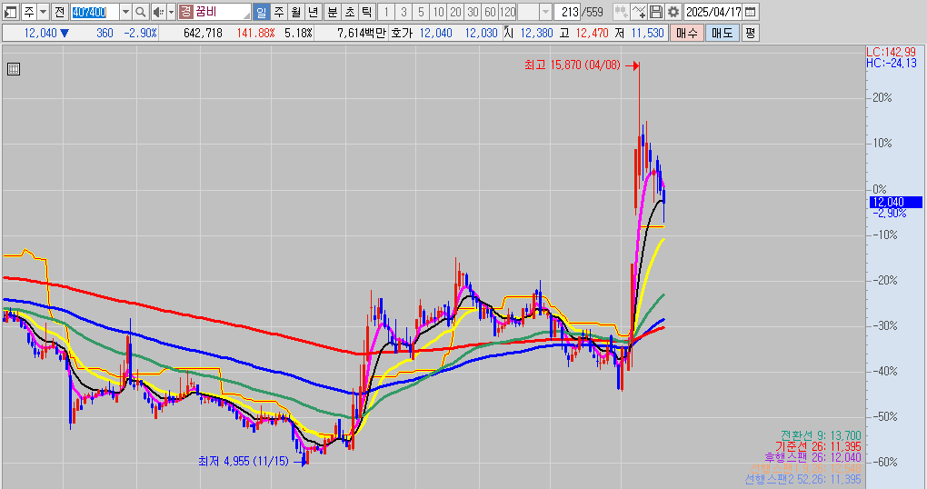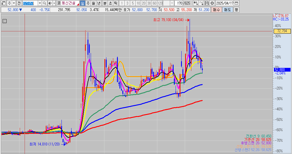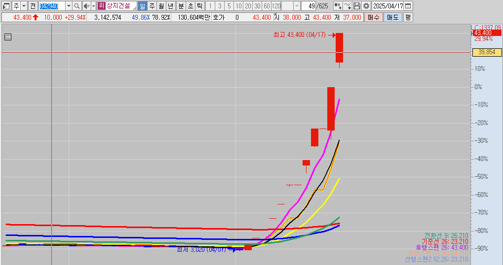 오리엔트정공은 몇달 전 저점대비 20배 상승을 보여주었으며, 현재 4/17일 상지건설이 10연상을 달성하며 무섭게 상승을 하고있습니다. 이와 같은 상승에 불나방처럼 달려들었다가는 큰 변동성에 손해를 입을 수 있으니 주의하시길 바랍니다.