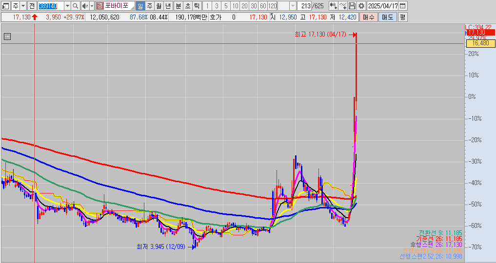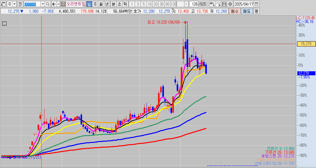 오리엔트정공은 몇달 전 저점대비 20배 상승을 보여주었으며, 현재 4/17일 상지건설이 10연상을 달성하며 무섭게 상승을 하고있습니다. 이와 같은 상승에 불나방처럼 달려들었다가는 큰 변동성에 손해를 입을 수 있으니 주의하시길 바랍니다.