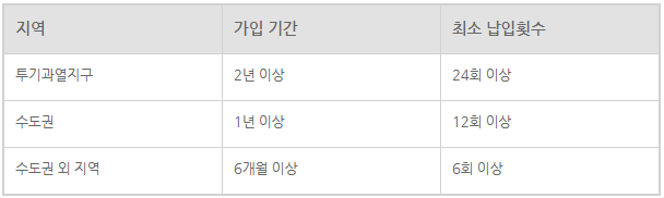 청약을 위해서는 청약 통장이 필요합니다. 청약 통장은 주택청약저축, 주택청약종합저축 등으로 나뉘며, 가입 후 일정 금액을 매달 납입해야 합니다. 통장 가입 후 일정 기간이 지나면 청약 신청이 가능합니다. 아래 표 참조바랍니다.