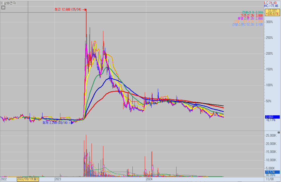 티플랙스 또한 유니온, 유니온머티리얼즈와 유사하게 단기 추세가 우상향이고, 현재 주가는 박스에 갇혀있습니다. 박스를 뚫어준다면 3720원까지 기대해 볼 만합니다.