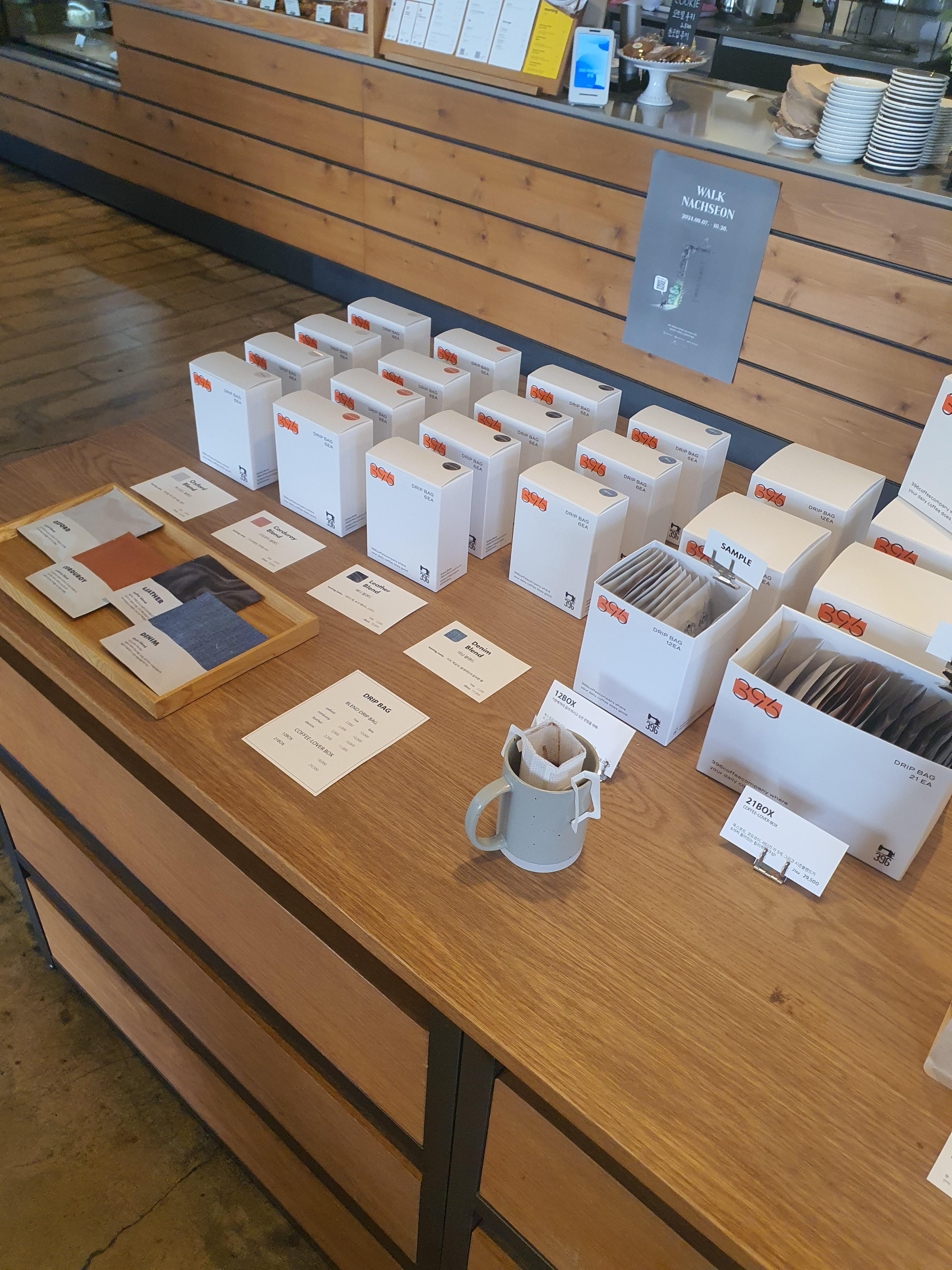 그리고 '396 커피컴퍼니'만의 특징이 바로 아래에 있습니다. 직접 원하는 원두를 가져오신 용기에 합리적인 가격으로 구매할 수 있는 친환경 프로젝트를 진행 중입니다. 그리고 드립백으로도 구매를 할 수 있습니다.