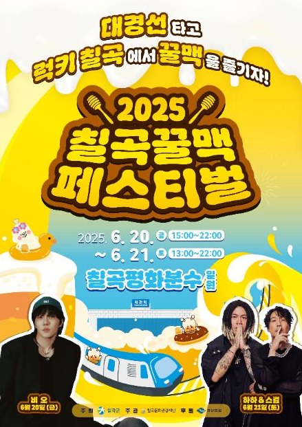 2025년 6월 20일부터 21일까지 이틀간 경북 칠곡군 왜관읍 칠곡평화분수 일원에서 열리는 ‘칠곡 꿀맥 페스티벌’은 매년 1만 명 이상이 찾는 칠곡의 대표 여름 축제로 자리 잡았습니다. 칠곡군은 전국 유일의 양봉특구로, 지역 특산물인 벌꿀과 맥주를 결합한 ‘칠곡 꿀맥’이 이 축제의 상징입니다. 2024년 기준, 축제 방문객 중 60% 이상이 대구·구미 등 인근 대도시에서 유입됐고, SNS 인증 이벤트 참여율도 30%를 넘는 등 MZ세대와 가족 단위 방문객 모두에게 큰 호응을 얻고 있습니다. 축제장은 올해 더욱 확장되어, 지역 브랜드 ‘칠곡 꿀맥’과 수도원 전통 독일식 소시지, 다양한 수제맥주, 먹거리, 음악 공연, 체험 프로그램 등 오감만족 콘텐츠가 한자리에 펼쳐집니다. 여름밤, 칠곡만의 달콤한 꿀맥주와 신나는 DJ파티, 야경이 어우러진 이곳에서 새로운 추억을 만들어보세요.